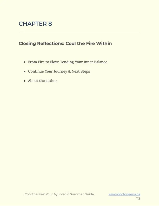 Inside, you’ll not only discover simple recipes, soothing rituals, and cooling remedies — you’ll also meet the Pitta archetypes. These powerful mind-body patterns explain why some of us become perfectionists, hotheads, or hyper-achievers in the heat, while others burn out in silence. This unique approach will help you understand yourself on a deeper level and offer practical ways to soothe your specific imbalances.
